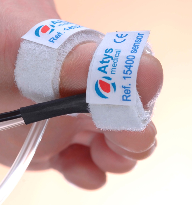 Le SysToe utilise ingénieusement la photopléthysmographie (PPG) associée à un algorithme unique développé et breveté par Atys Médical. La PPG permet de détecter, grâce à une cellule photoélectrique (capteur), les variations du flux sanguin dans la circulation cutanée.
